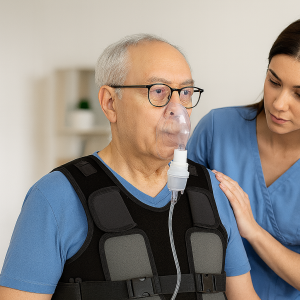 El chaleco vibratorio de electroestimulación desarrollado en este proyecto combina tecnología médica avanzada, electrónica inteligente y diseño ergonómico. Su sistema de vibración controlada y estimulación muscular permite reproducir de forma automatizada las técnicas fisioterapéuticas convencionales, facilitando el drenaje pulmonar y la mejora de la función respiratoria.